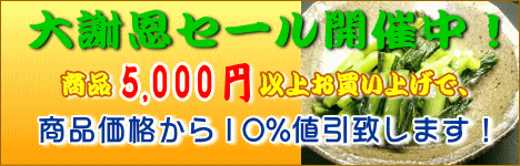 只今大謝恩セールとしまして、通販で1件あたり商品を5,000円以上お買い上げのお客様は、商品価格の10%値引きをさせて頂きます!